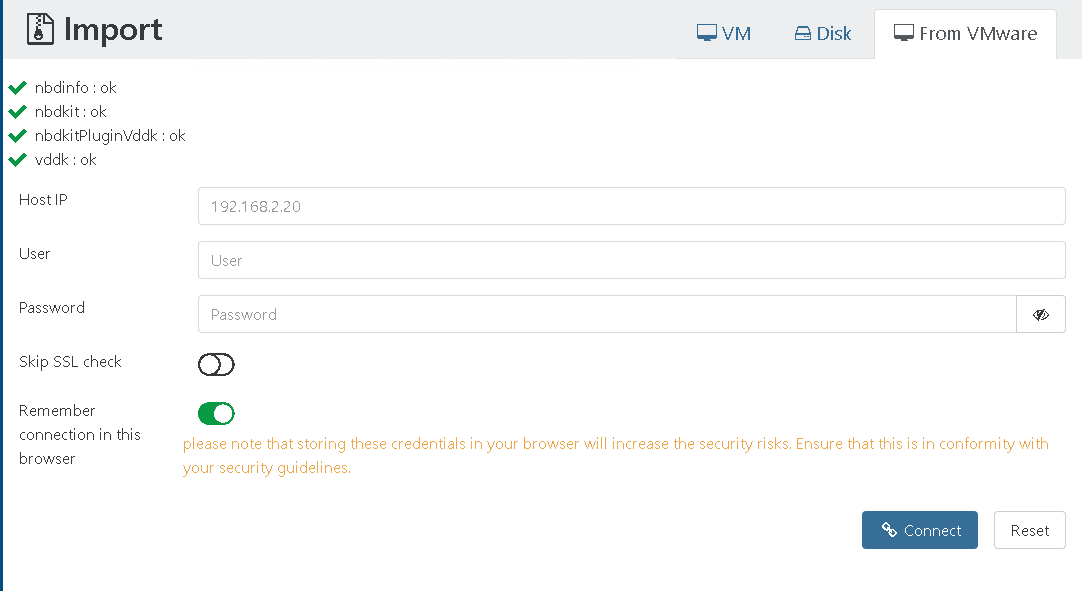 Zaloguj się do Xen Orchestra. Z menu głównego wybierz Import → From VMware. Wprowadź dane do vCenter (lub bezpośrednio do hosta ESXi) i kliknij Connect.